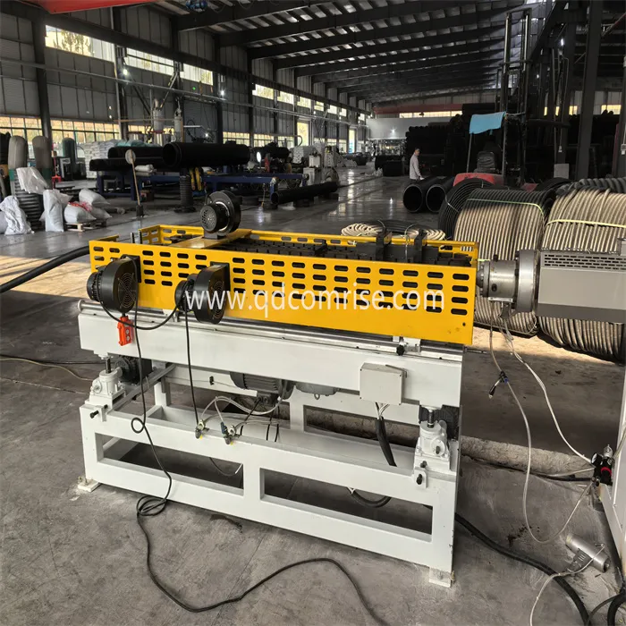 Съемник: механизм тяги обеспечивает непрерывную экструзию гофрированной трубы с постоянной скоростью.