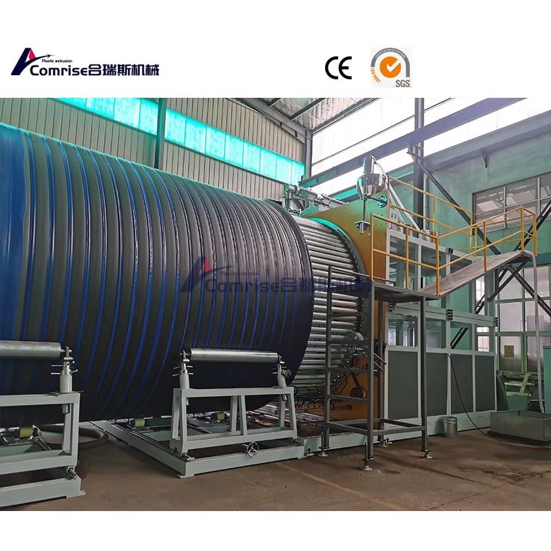 Comrise поглощает новейшие технологии как из внутренних, так и международных источников для производственных линий труб HDPE с большим диаметром и труб FR-PP. Он может производить дренажные трубы с большим диаметром 200-3200 мм. HDPE с большим диаметром настенных настенных трубных машин все чаще становится основным продуктом городских дренажных систем. Это постепенно заменит стальные трубы и цементные трубы.