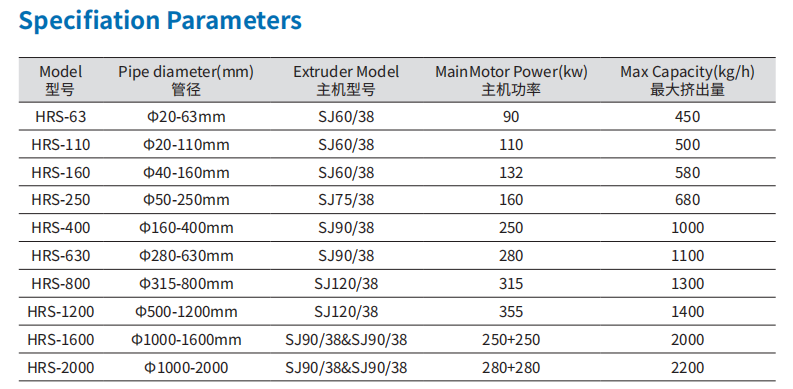 Емкость: одно винтовой экструдер, подходящий для обработки смолы с высокой пропускной способностью, с максимальной емкостью 1000 кг/ч. Диаметр: от 16 до 800 мм. Внедрение разумного проектирования и поглощения технологий безопасной производства, получила сертификаты CE и ISO